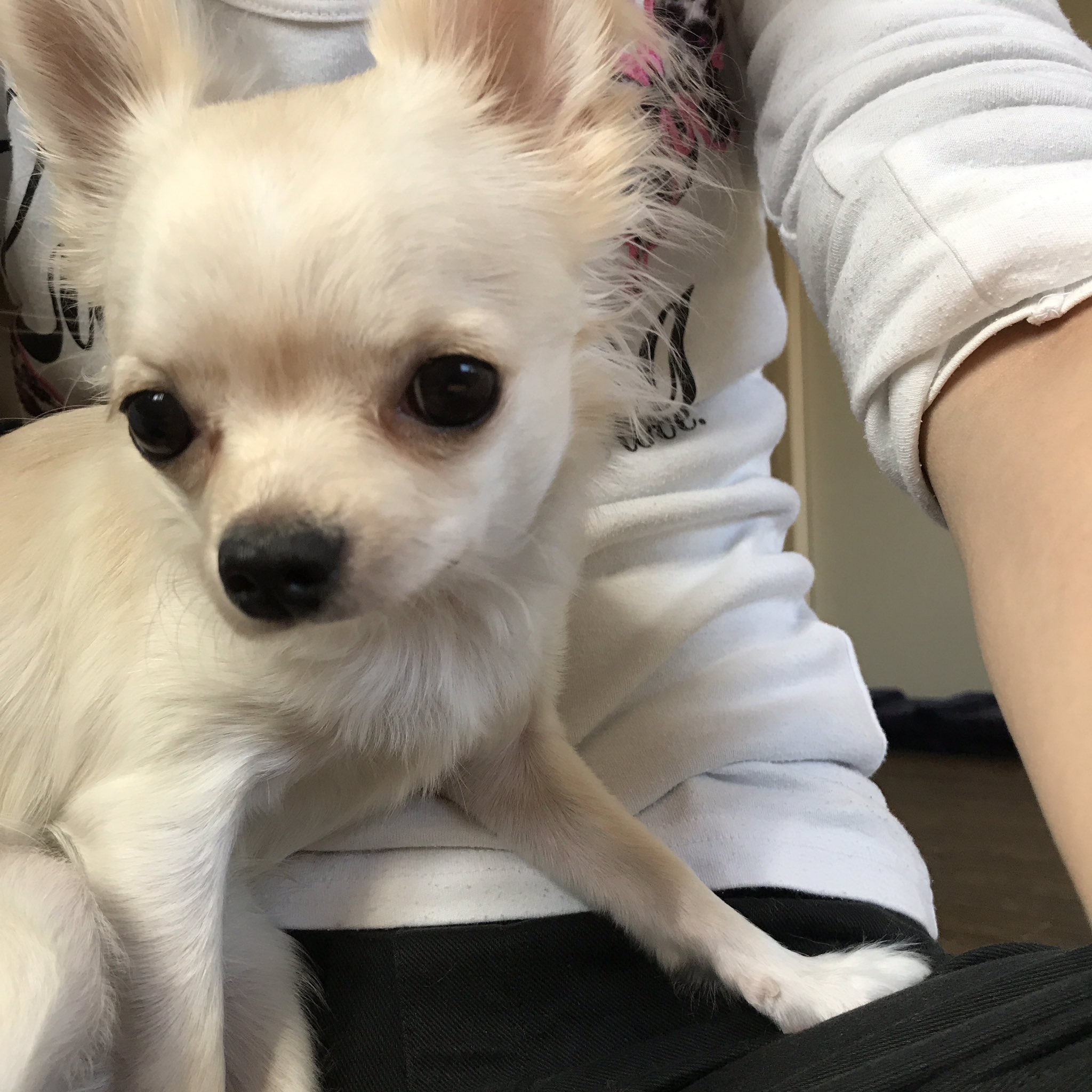 ふぅ あぁー しまった チワワ紹介したのはいいけど 名前が抜けてた 名前 侑深 ゆきみ 飼い主の膝の上不安定で乗りにくいけど 好きみたい W 最近よく乗ってくるようになった クリームチワワ チワワ 犬好きさんと繋がりたい 犬 膝の上